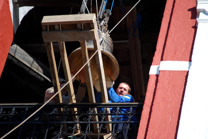 DSC_8350 Опубликовано 04.12.2013 с разрешением 800 × 536 в галерее Поднятие новых колоколов. Сережа, главный инженер проекта, принимает колокол.